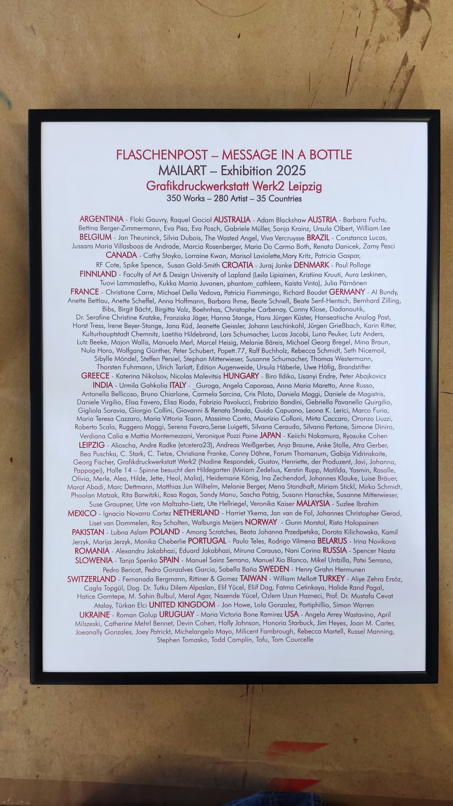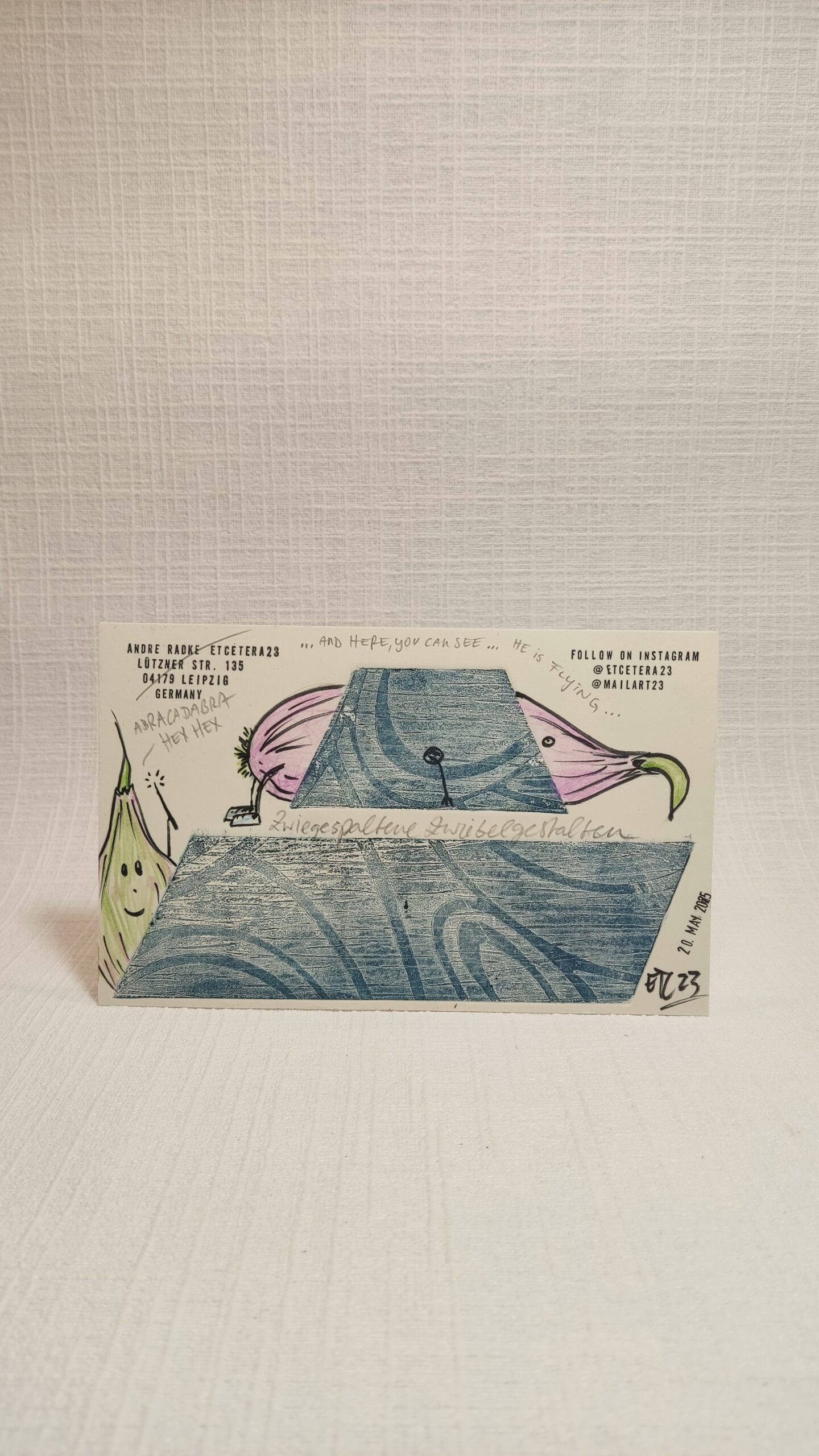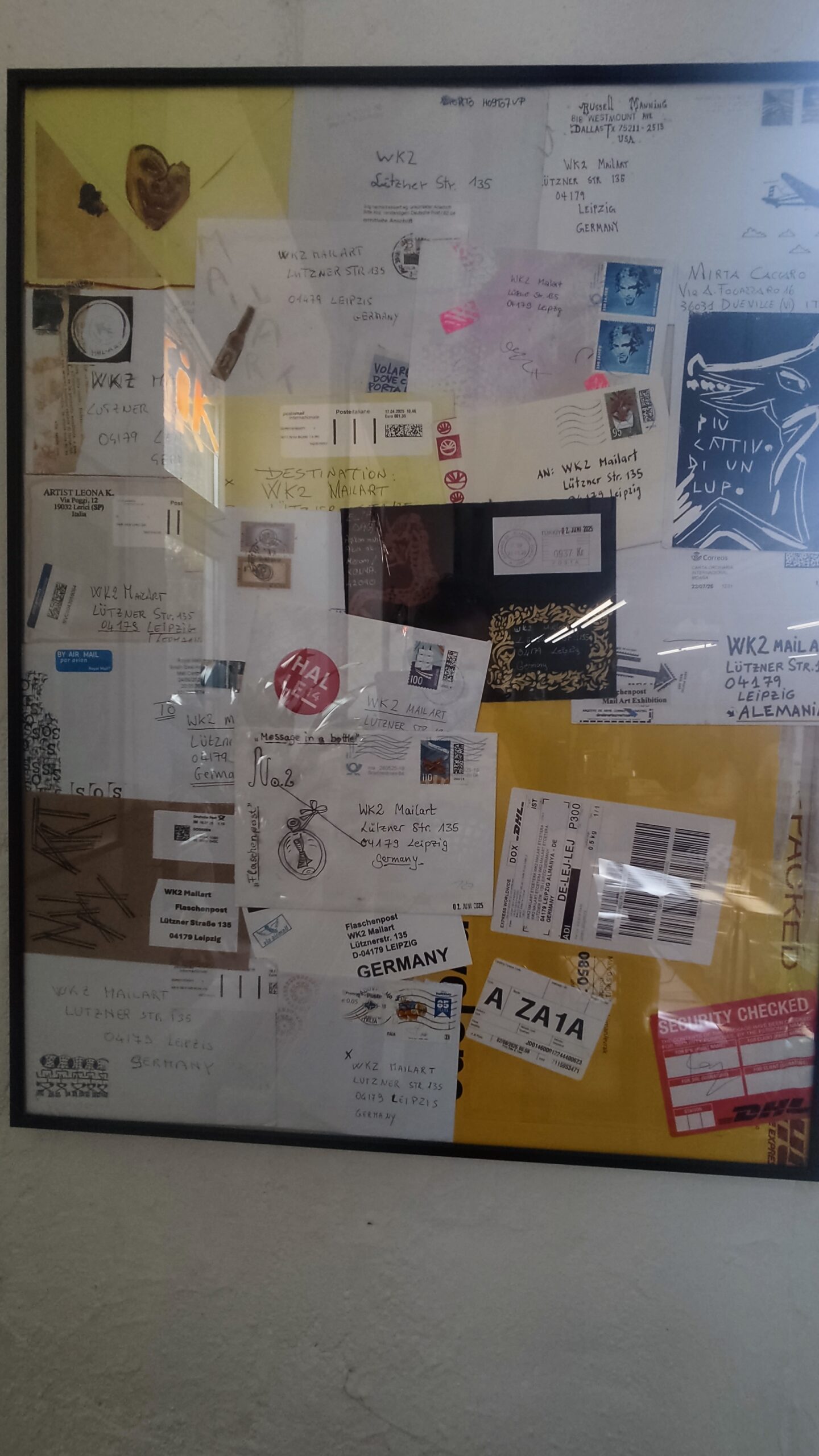 (S. Solverman – USA), Courage (Sisyphos Gesselschaft – Germany), The Lost Art of Letterwriting (Edition Janus – Germany), Marc Aurel (Trier – Germany), El Mail Tao (K.F. Hacker – Germany), Dans les Limbres (Galerie Cerami – Croatia), Social Dada (Casa del Dragon – Spain), Kindness (Dolphin Galerie – USA), Fluxus for 2025 (L. Schumacher – Germany), Collectively (Cris Piloto – Italy), Mandalas and there universe (J.M. Villasboas De Andrade – Brazil), Yellow is beautiful (House of Valenciennes – France), Mad Hatter (USA)Postcard 2025 (L. Tymkiv – Ukraine), Fire of Bonfires (T. Golup – Estonia), Lebens.mittel (Künstlerbund Tübingen – Germany), Mailart Day 2025 (R.Maggi – Italy), Ticket Ticket (Cascadia Artpost – USA), Arthole (Boog – USA), Cut & Connect (S. Dubois – Belgium), Abracadabra (Lettres & Images – France), Connect & Create (K. Nakamura – Japan), Postcards & Mailart (Immanence Art Center – France), Clouds (C.B. Cello – Italy), Angels (F. Bandini – Italy), Flaschenpost – Message in a bottle (etcetera23 & Werk2 – Germany)Liberritutti (Italy), The birds have also gone (A. Askerbal – Turkey), Sisyphos (Germany), Space Byi (R. Rochallyi – Czech), Pythagoras (L. Favaro – Italy), Blumen (E. Sautin – Italy), Outsiders (D. Rise – Ireland), Drumming (M. Carmo Both – Brazil) and more…
